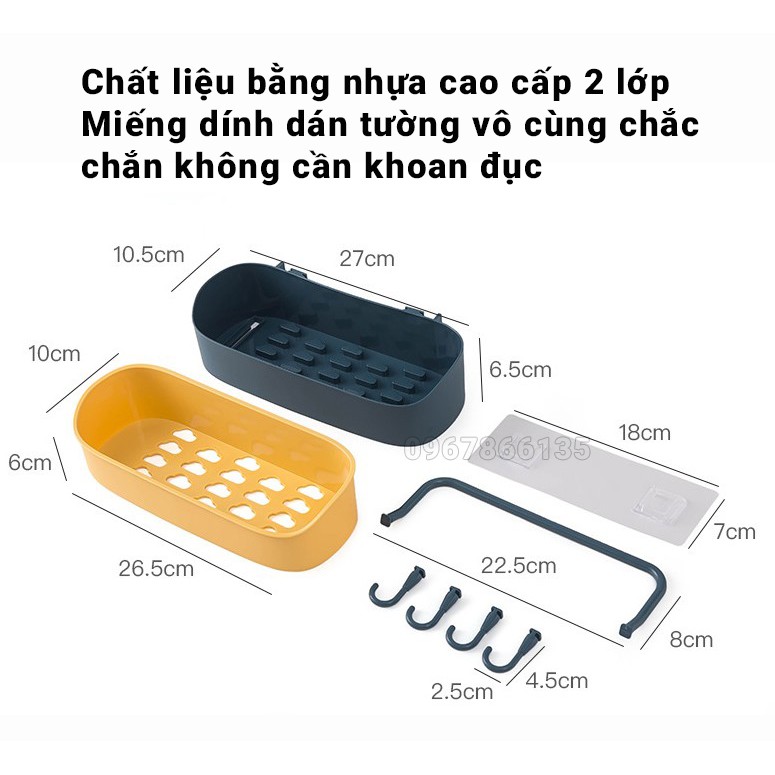 Giới thiệu Giá treo tường đựng đồ nhà tắm hình chữ nhật có kèm móc treo bằng nhựa cao cấp 2 lớp