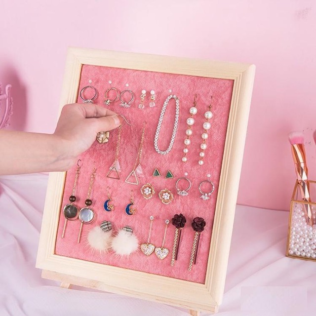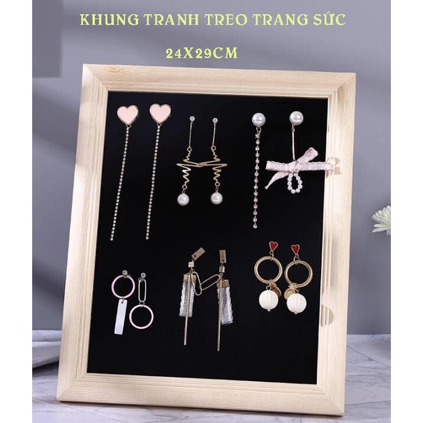 Giá treo trang sức như kiểu khung tranh , có móc để treo tường phía sau- Khung gỗ , trong lót nhung dày mềm mịn , dùng treo trang sức các loại