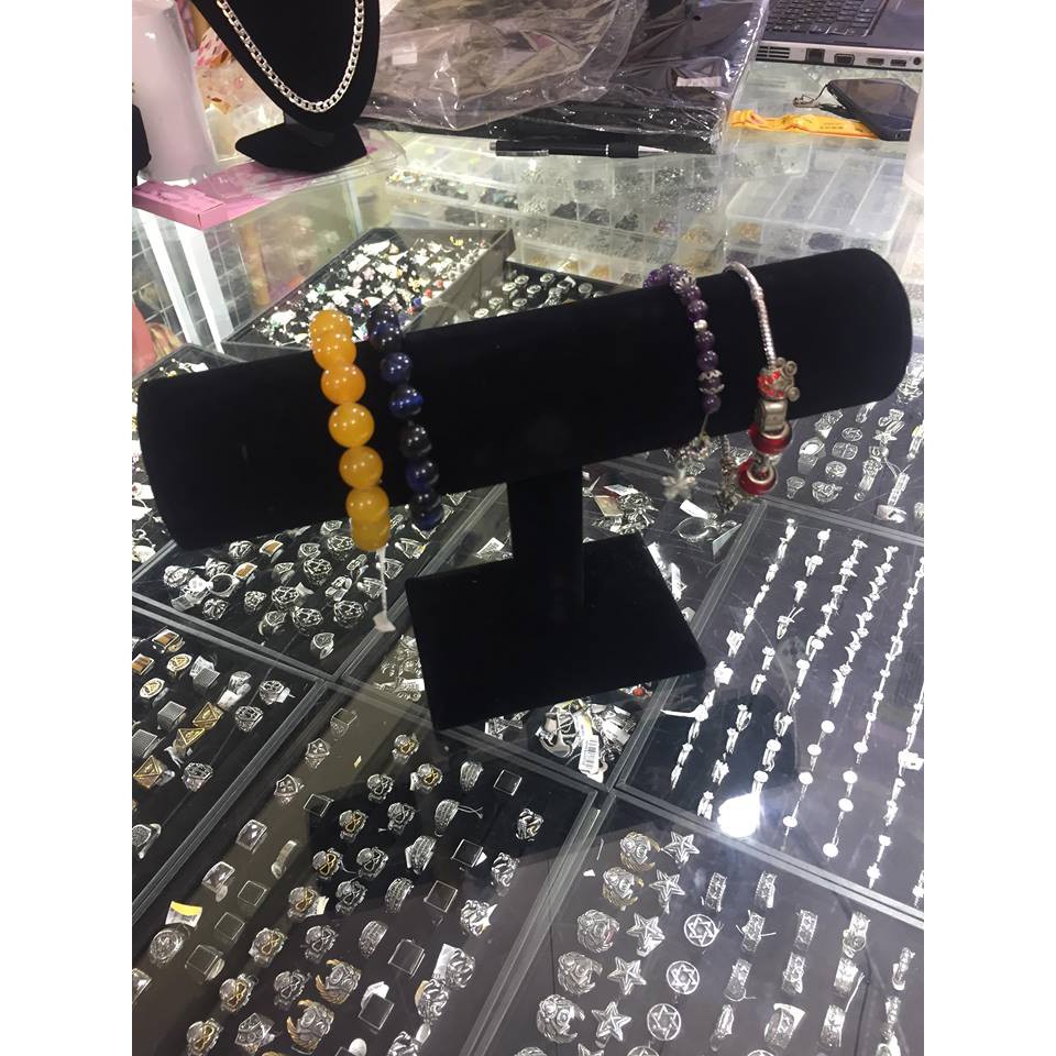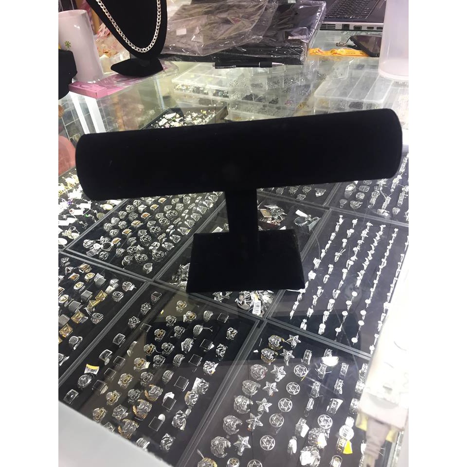 Giới thiệu Giá trưng bày vòng tay trụ tròn gỗ bọc nhung đen Studentss Piercing (ảnh thật)