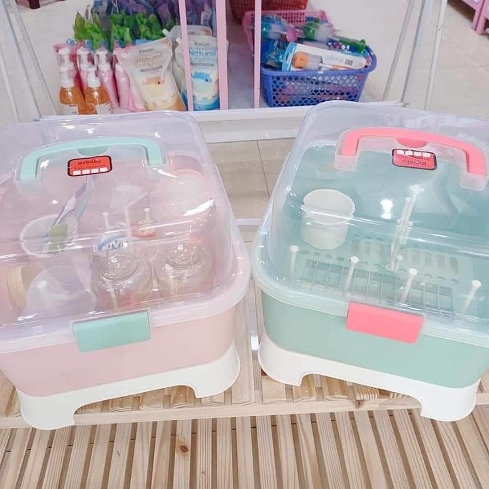 Nhà cửa & Đời sống > Đồ dùng phòng tắm > Kệ đựng xà phòng || Gía úp bình sữa Bybaby 103 có nắp đậy kèm khay đựng nước và các cây treo bình sữaCòn hàng
