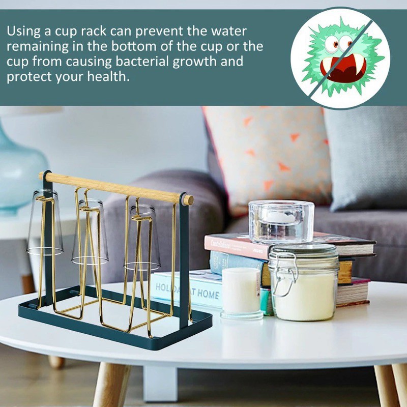 Giới thiệu Giá úp cốc 6 chiếc sơn tĩnh điện tay cầm bằng gỗ