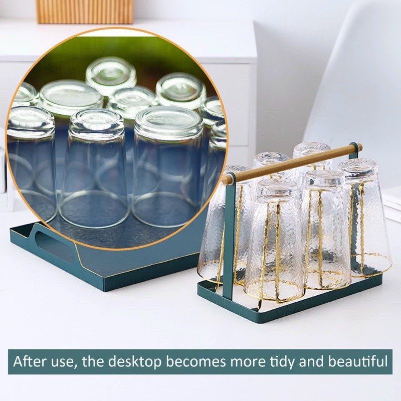 Giá úp cốc 6 chiếc sơn tĩnh điện tay cầm bằng gỗ