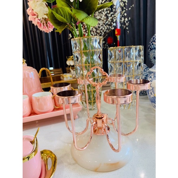 GIÁ ÚP LY XOAY MẠ VÀNG, ĐẾ PHA LÊ CAO CẤP