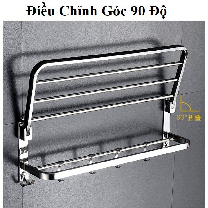Giá Vắt Khăn Nhà Tắm INOX SUS304 Thiết kế 2 tầng Gập lắp đặt dán tường hoặc khoan tường - G304