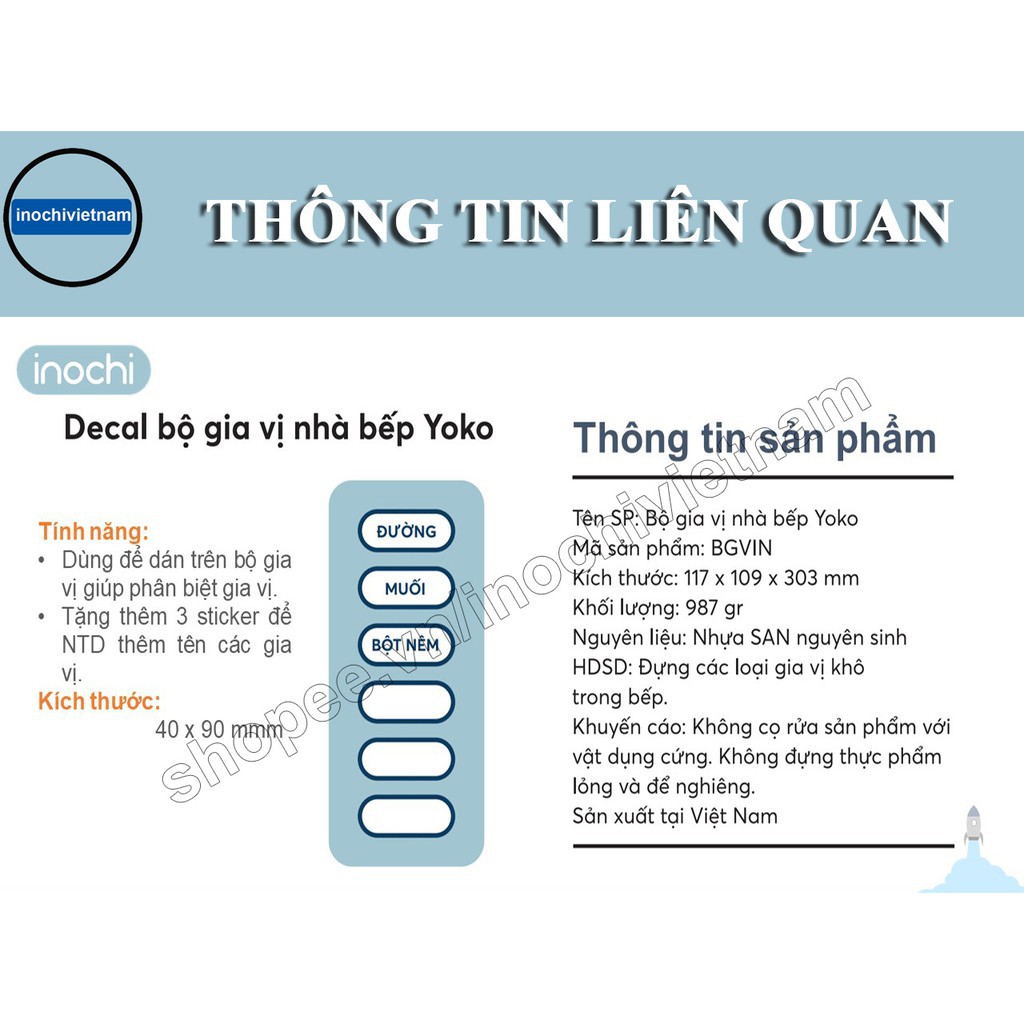 Giới thiệu Bộ gia vị nhà bếp, Cao Cấp Yoko Nhật Bản thông minh Kháng Khuẩn Nắp Kín Sắp Xếp Linh Hoạt BGVIN
