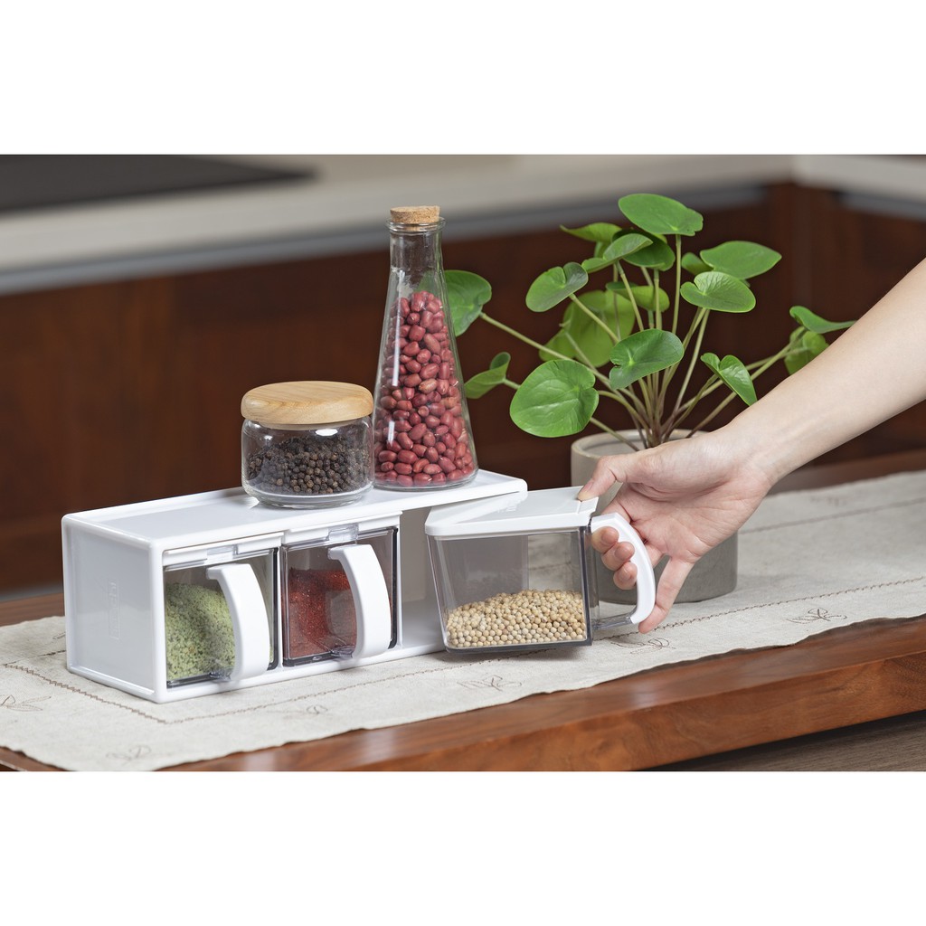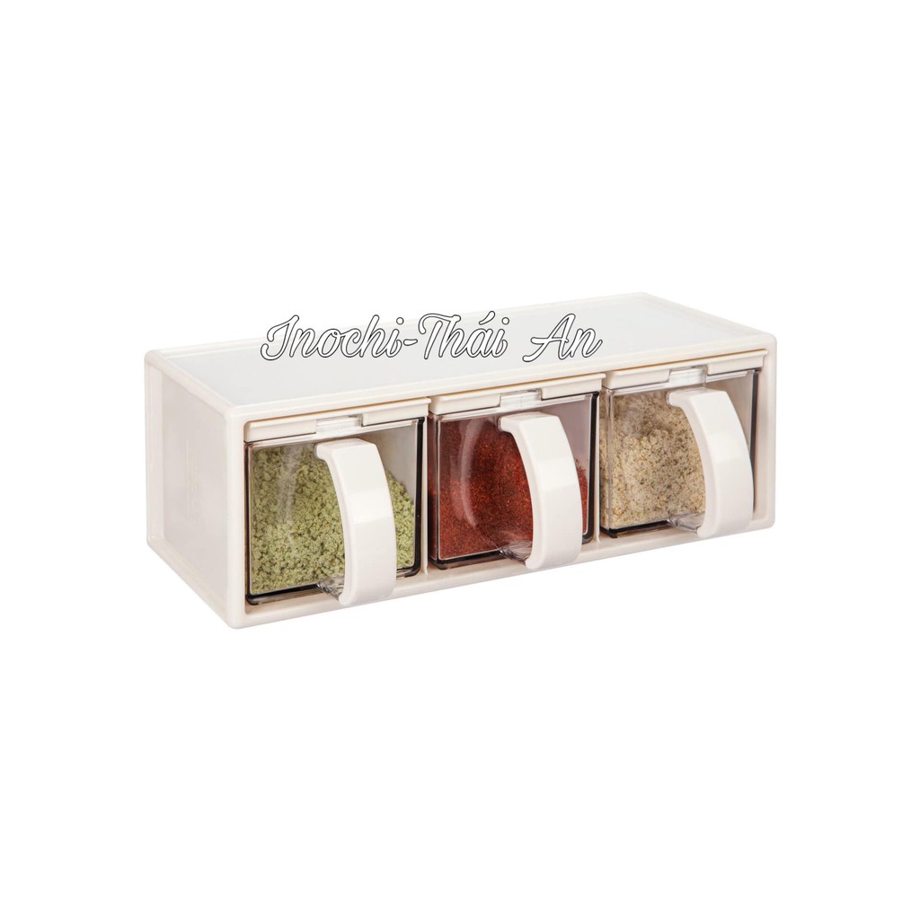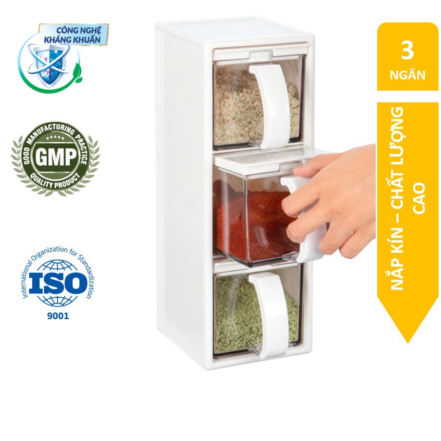 Bộ gia vị nhà bếp Yoko Nhật Bản 3 ngăn hàng chính hãng cao câp, kháng khuẩn, an toàn sức khỏe