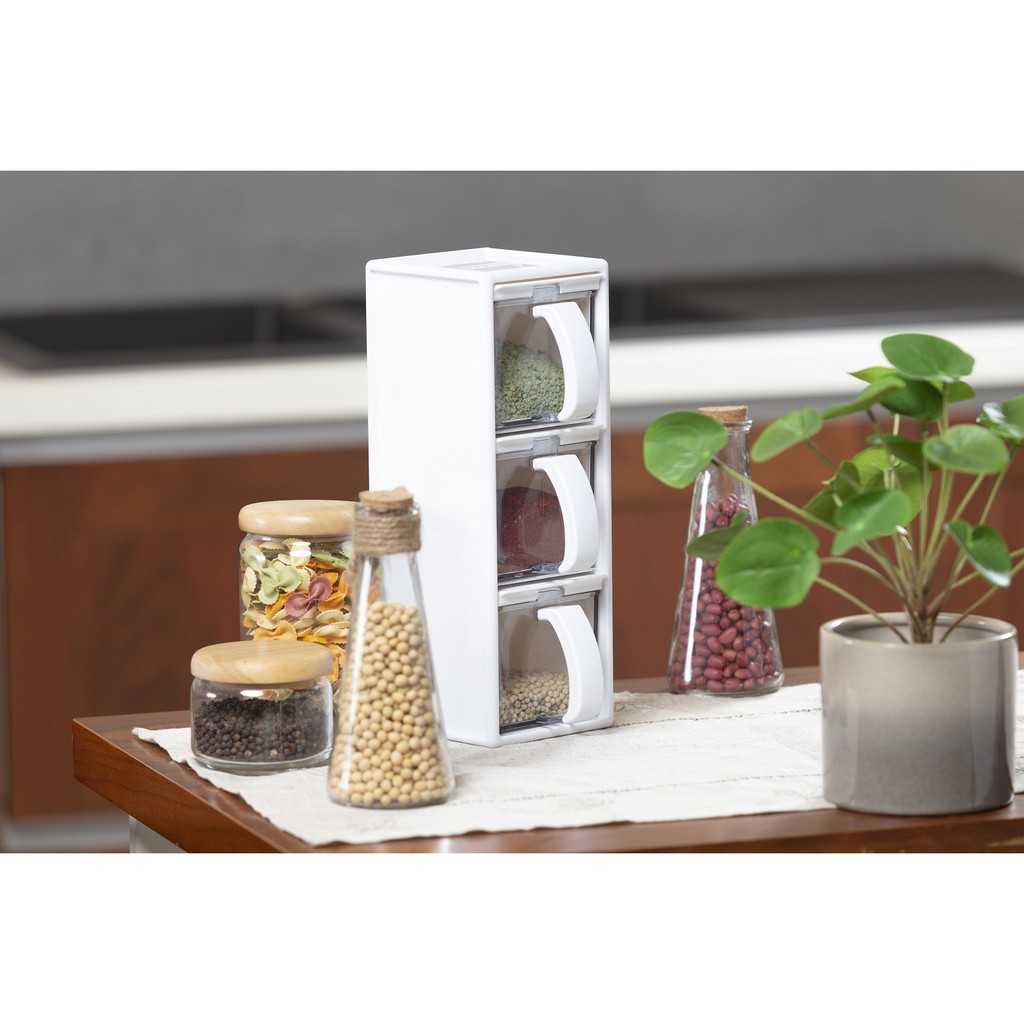 Thiết kế gồm 3 ngăn đựng gia vị dễ dàng di chuyển các vị trí khác nhau vô cùng tiên lợi, linh hoạt cách sắp xếp (dựng đứng, để ngang)