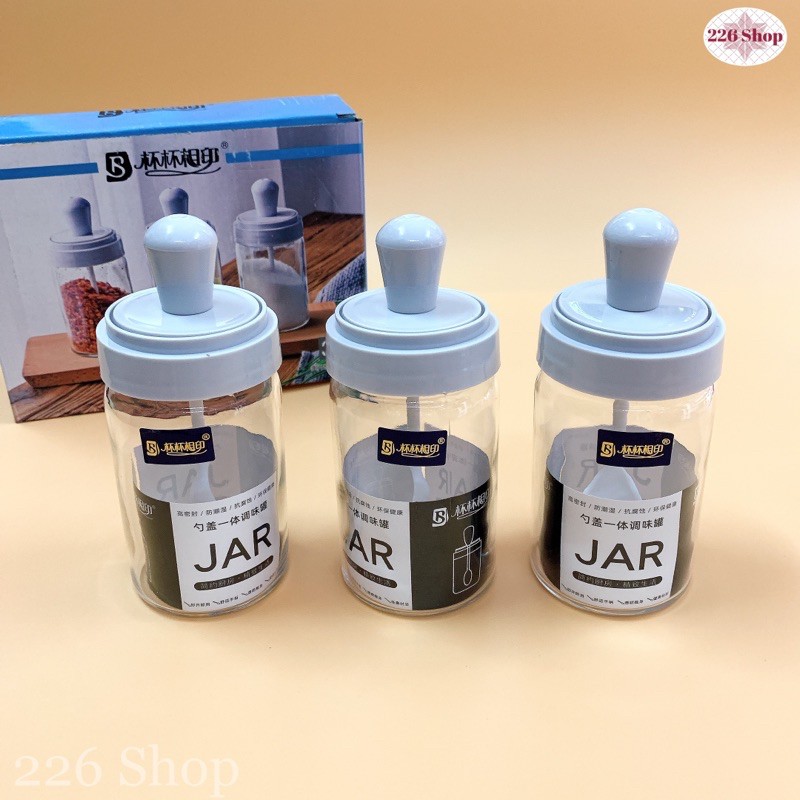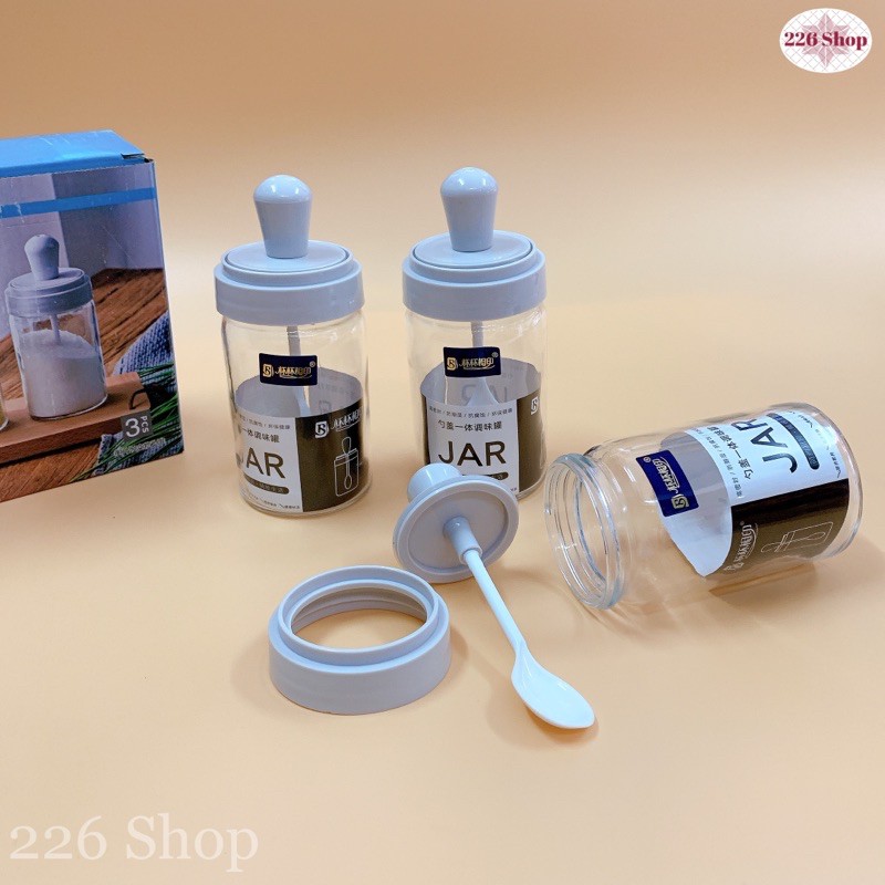 Nhà cửa & Đời sống > Dụng cụ nhà bếp > Dụng cụ đo lường || Bộ gia vị thuỷ tinh Dlicsy nắp hít kèm muỗng (bộ 3 hũ 300ml).Được chọn màuCòn hàng