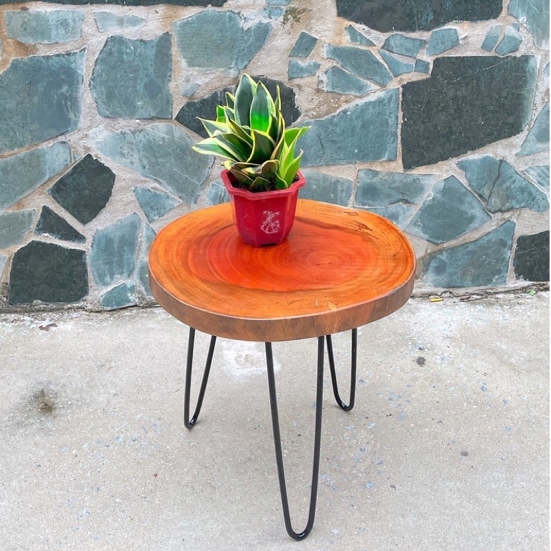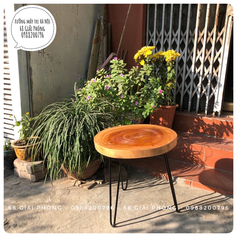 Tên sản phẩm: Bàn gỗ xà cừ nguyên tấmKích thước: kích thước từ D25-50cm, kết hợp cùng chân sắt cao 40cm