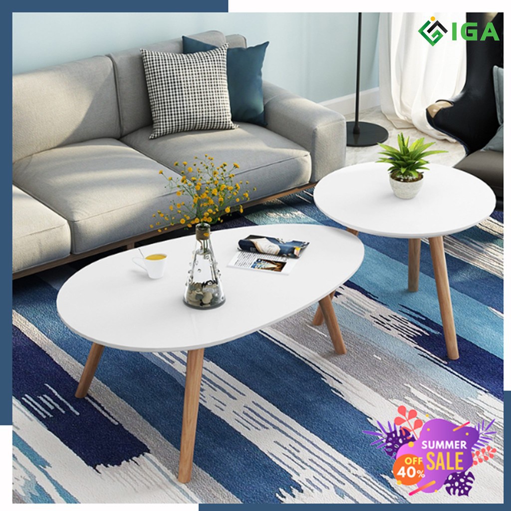 [COMBO BÀN TRÀ SOFA CAO CẤP]🍃 Kích thước: 1 bàn mặt trứng rộng 50cm dài 90cm cao 45cm, 1 bàn D50 mặt bàn rộng 50cm cao 47cm