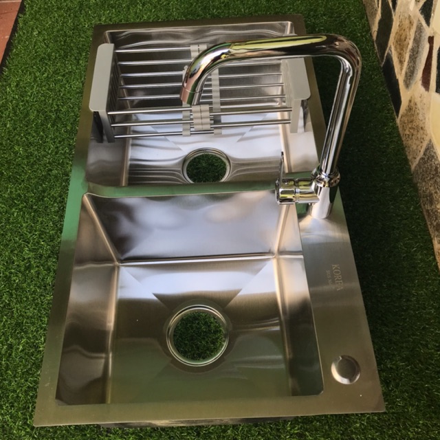 Chậu rửa bát Inox 100% 2 hố (lệch - cân)Kèm vòi inox304 Vông bóng sịn