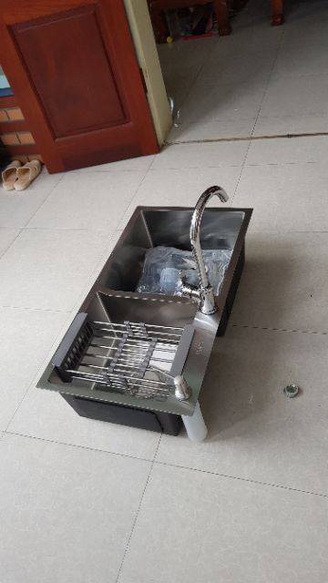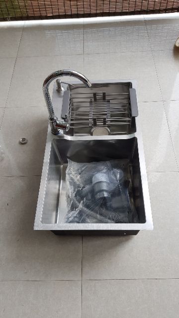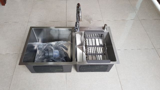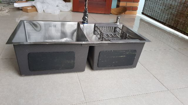 - Chậu rửa chén được làm từ inox 304 ,được đúc nguyên khối, bề mặt sáng mờ, 2 hộc rửa chén bát lớn và sâu 23cm giúp đựng được nhiều chén bát hơn và khi rửa nước không bị bắn ra ngoài.