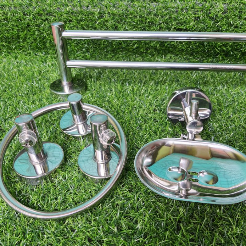 Bộ phụ kiện nhà tắm 6 món Inox (Bộ phụ kiện nhà vệ sinh) thiết kế sang trọng tinh tế lịch lãm giúp cho gia đình bạn trở nên sang trọng và lịch sự.Bộ sản phẩm bao gồm: