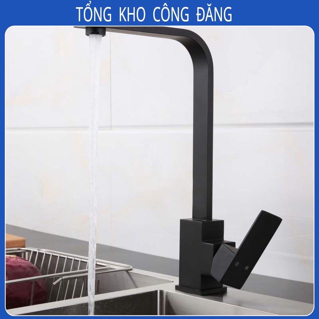[GIÁ XƯỞNG]Vòi rửa bát inox sus 304 vuông nóng lạnh sơn tĩnh điện nano đen.