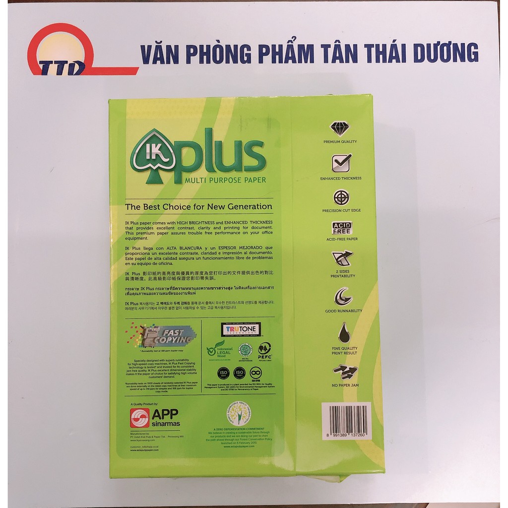 HOÀN TIỀN 300% NẾU NHƯ SẢN PHẨM KHÔNG GIỐNG VỚI QUẢNG CÁO !!*Mô tả sản phẩm Giấy IK Plus A4 70gsm :