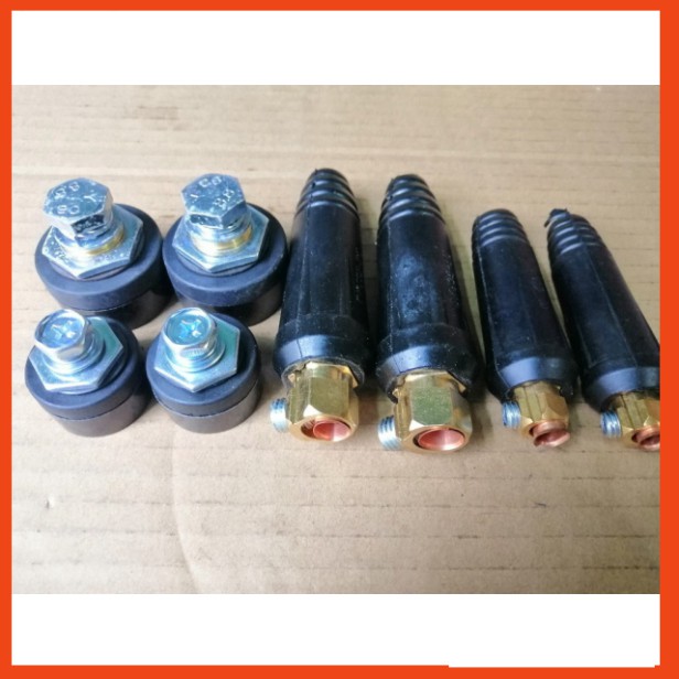 Giắc nối cho máy hàn có 2 loại: Loại lớn (35-50) và loại nhỏ (10-25)Loại lớn có đầu Đực (gắn vô dây hàn, dây Mass) và loại cái (gắn vô máy)