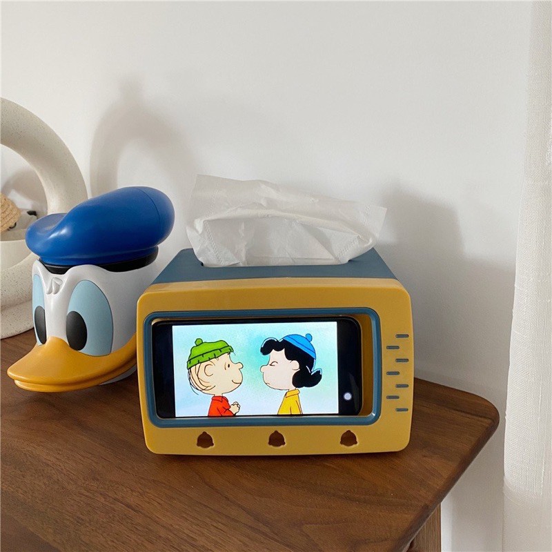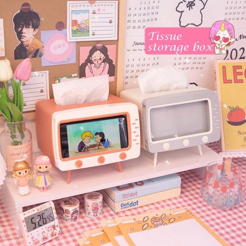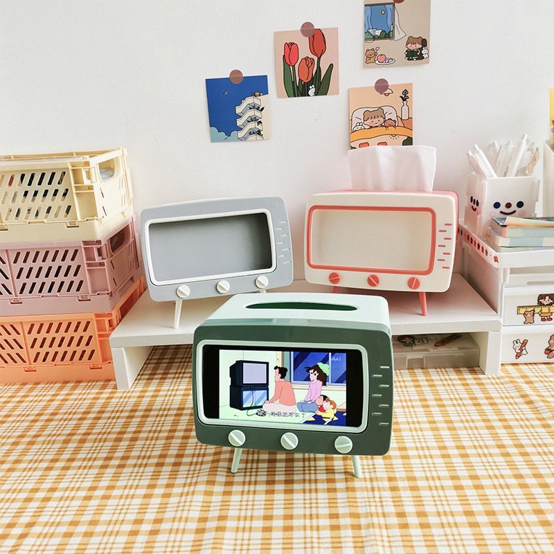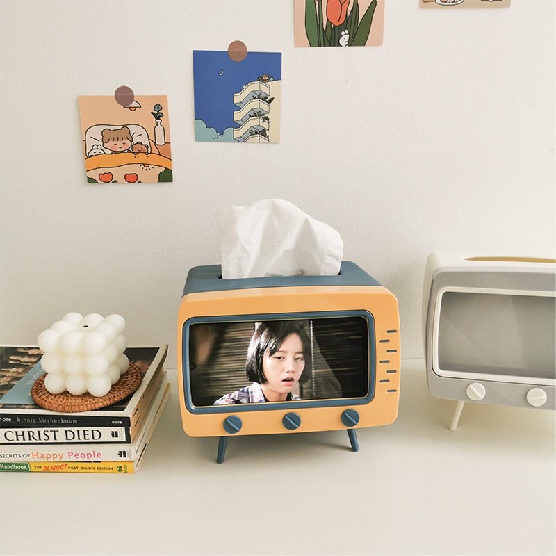 Nhà cửa & Đời sống > Sắp xếp nhà cửa > Hộp khăn giấy || (GIẢM 5k với ĐƠN 0Đ) Hộp Đựng giấy ăn cao cấp kèm giá đỡ điện thoại 2in1 hình tivi phong cách retroCòn hàng