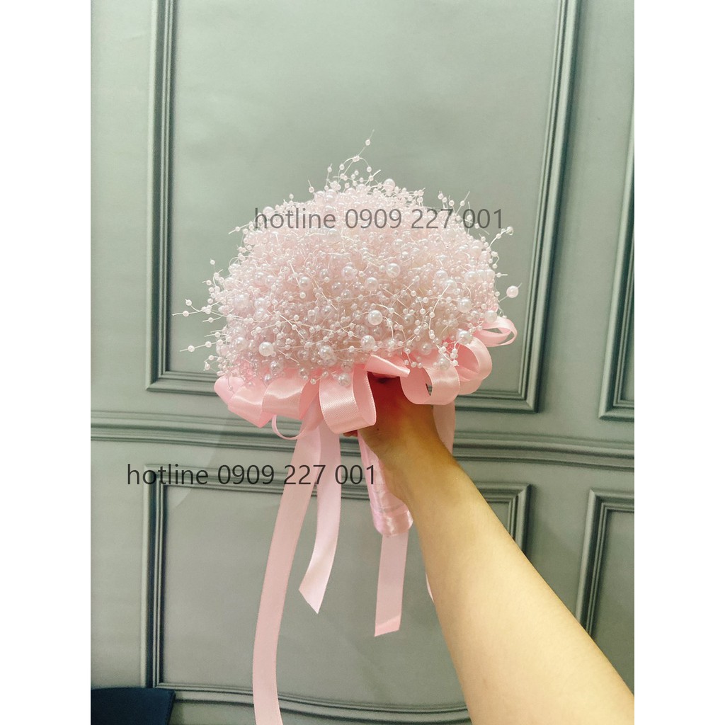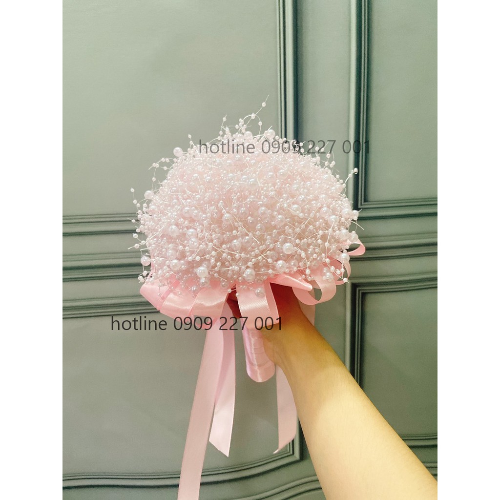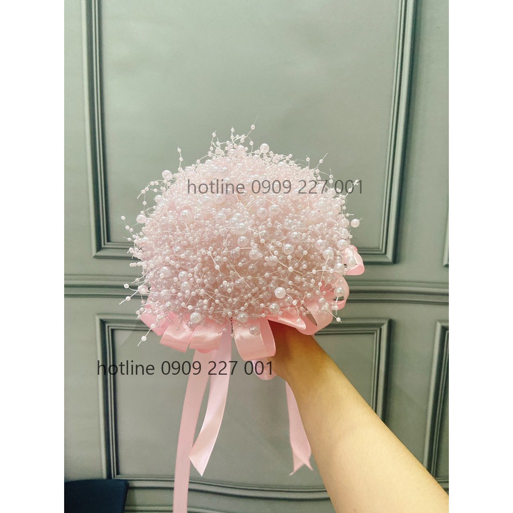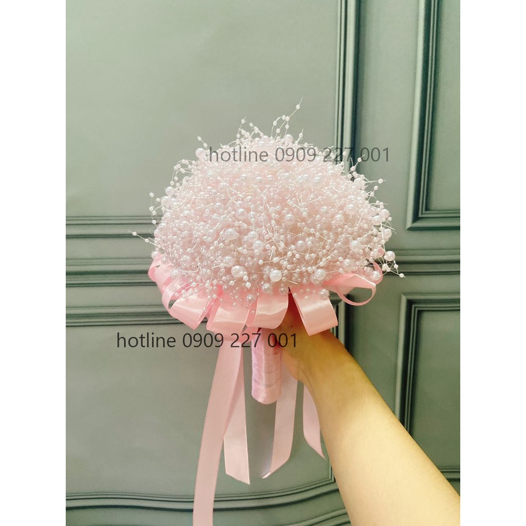 [GIAM 8K FOLLOWER] - BÓ HOA CƯỚI CẦM TAY CÔ DÂU HẠT CƯỜM HẠT TRAI MÀU HỒNG RUY BĂNG MÀU HỒNG XINH XẮN HOA CƯỚI GIÁ RẺ