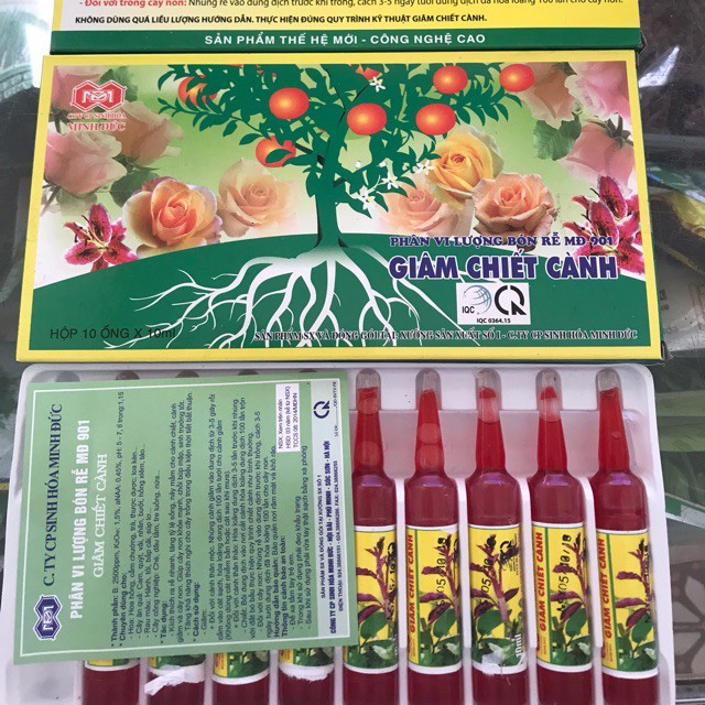 Thuốc giâm chiết cành - Phân bón vi lượng MĐ-901 được cung cấp bởi Công ty cổ phần sinh hóa Minh Đức có tác dụng kích thích cây ra rễ. Thích hợp trong quá trình nhân giống nhiều loại hoa cây cảnh.Một số loài cây nhân giống bằng cách giâm chiết cành