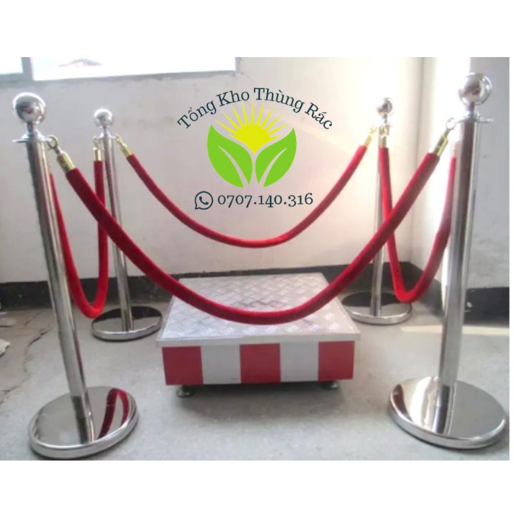 - Cột chắn inox dây căng là sản phẩm chúng ta dễ bắt gặp trong chuỗi thiết bị phân làn di động, với kiểu dáng đẹp và sang trọng cột phân cách trùng cho nhà hàng thường được sử dụng tại các sự kiện, hội nghị, khách sạn, phân làn lối đi tại các buổi đón tiếp các phái đoàn quan chức cao cấp