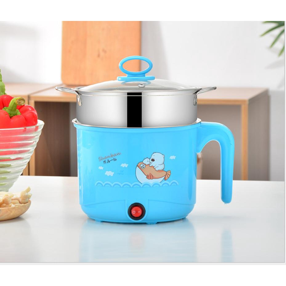 [GIẢM GIÁ SIÊU BẤT NGỜ] Ca Nấu Mì, Nấu Cơm Đa Năng Có Tay Cầm 1,8L - Nồi Lẩu Điện Mini Kèm Giá Hấp INOX