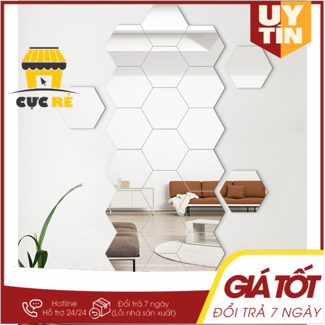 [GIẢM GIÁ SỐC] Bộ 12 gương dán tường 4x4 cm - Bộ 12 Miếng Gương Lục Giác Dán Tường Trang Trí