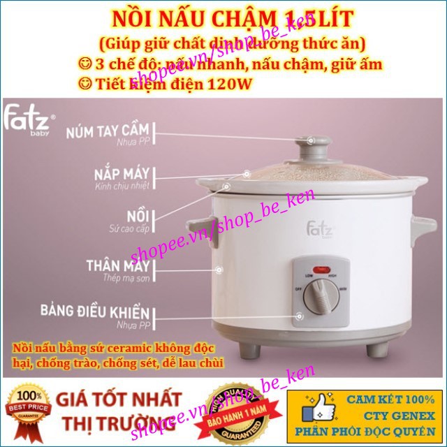 (GIẢM GIÁ SỐC) Nồi nấu cháo chậm 1,5Lít ăn dặm cho bé và gia đình FatzBaby FB9015MH - Fatz Slow 1