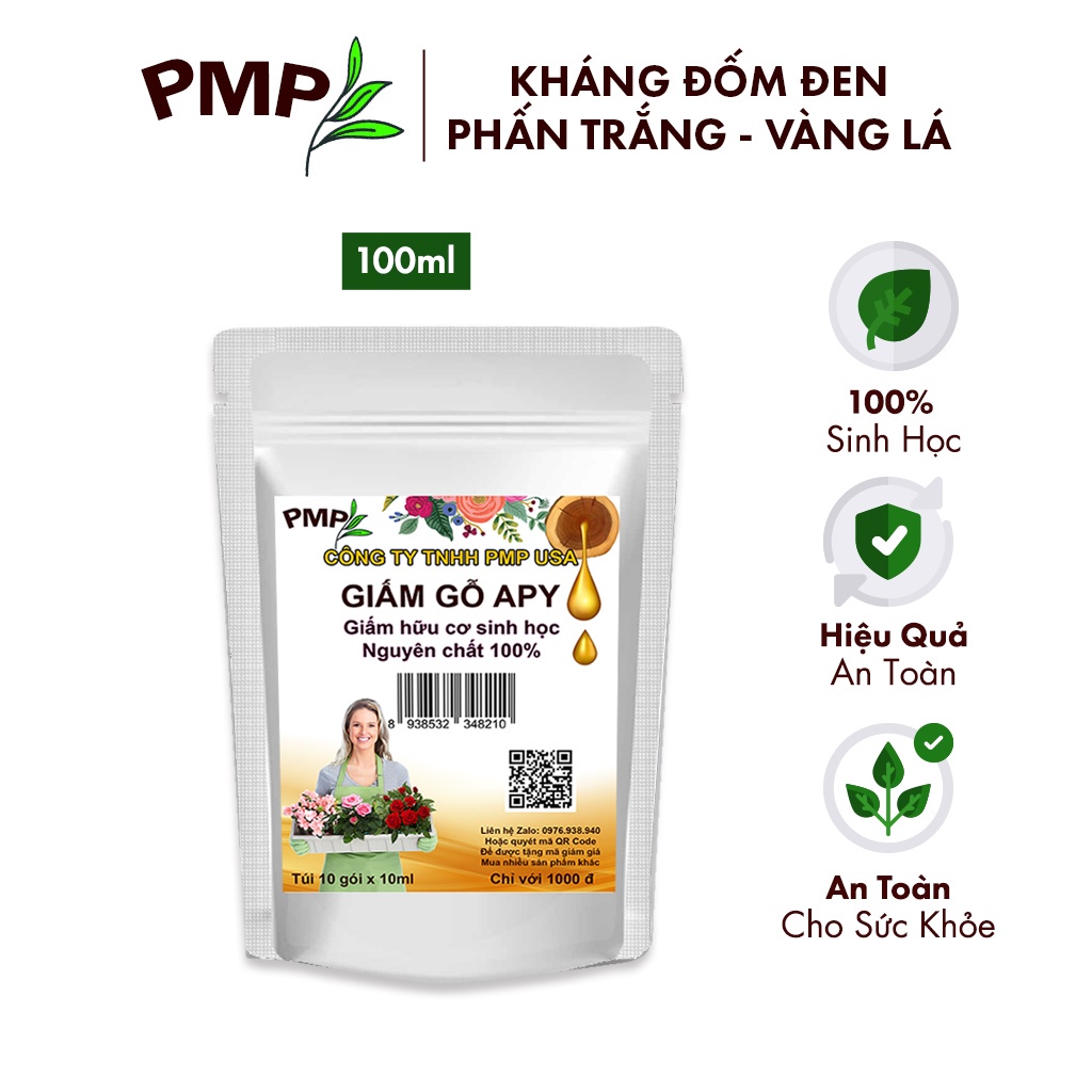 Giới thiệu Giấm Gỗ Sinh Học APY PMP Kháng Đốm Lá, Đốm Đen, Vàng Lá, Phấn Trắng Cho Hoa Hồng, Rau Sạch, Lan, Cây Cảnh 100ml