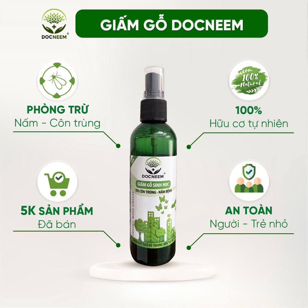 Giới thiệu Giấm gỗ sinh học DOCNEEM phòng ngừa xua đuổi côn trùng, diệt nấm lá cho cây cảnh, rau củ quả, hoa hồng , phong lan 100ml