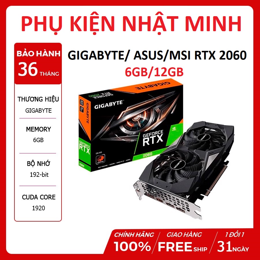 Máy tính & Laptop > Linh Kiện Máy Tính > VGA - Card Màn Hình || [GIẢM SỐC] Card màn hình VGA RTX 2060 các hãng gigabyte/ asus/ msi 6gb/12gb full new chính hãng bảo hành 36 thángCòn hàng