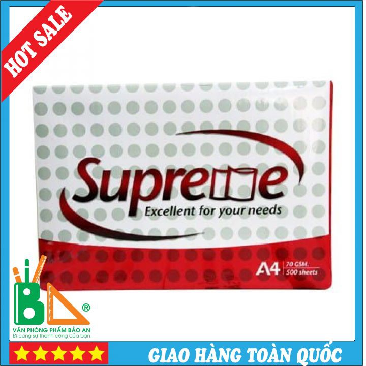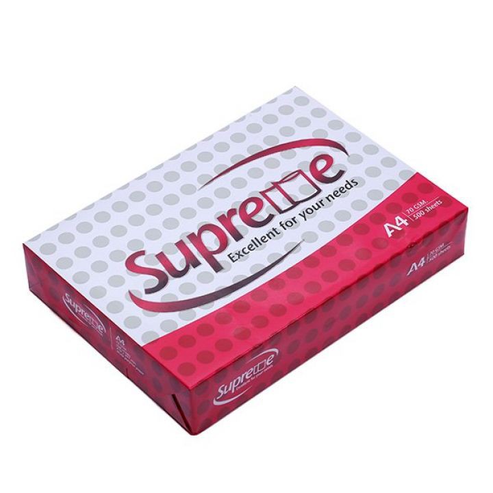 - Giấy Supreme A4 70gsm là loại giấy in cao cấp, trắng, đẹp, thích hợp với tất cả các loại máy in.
