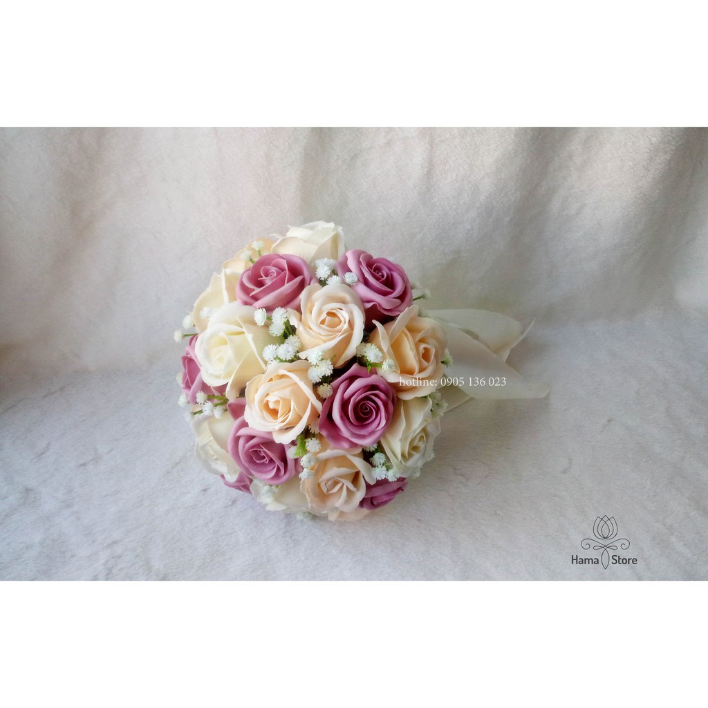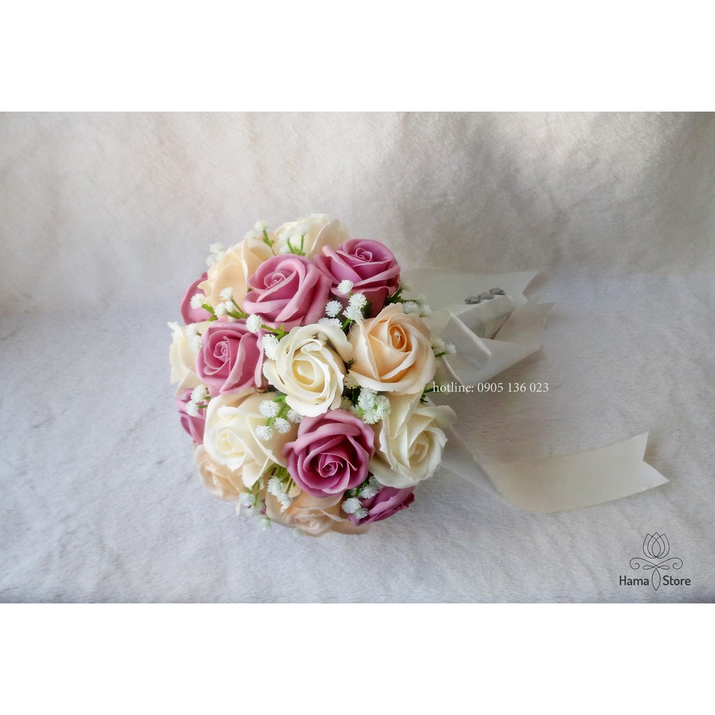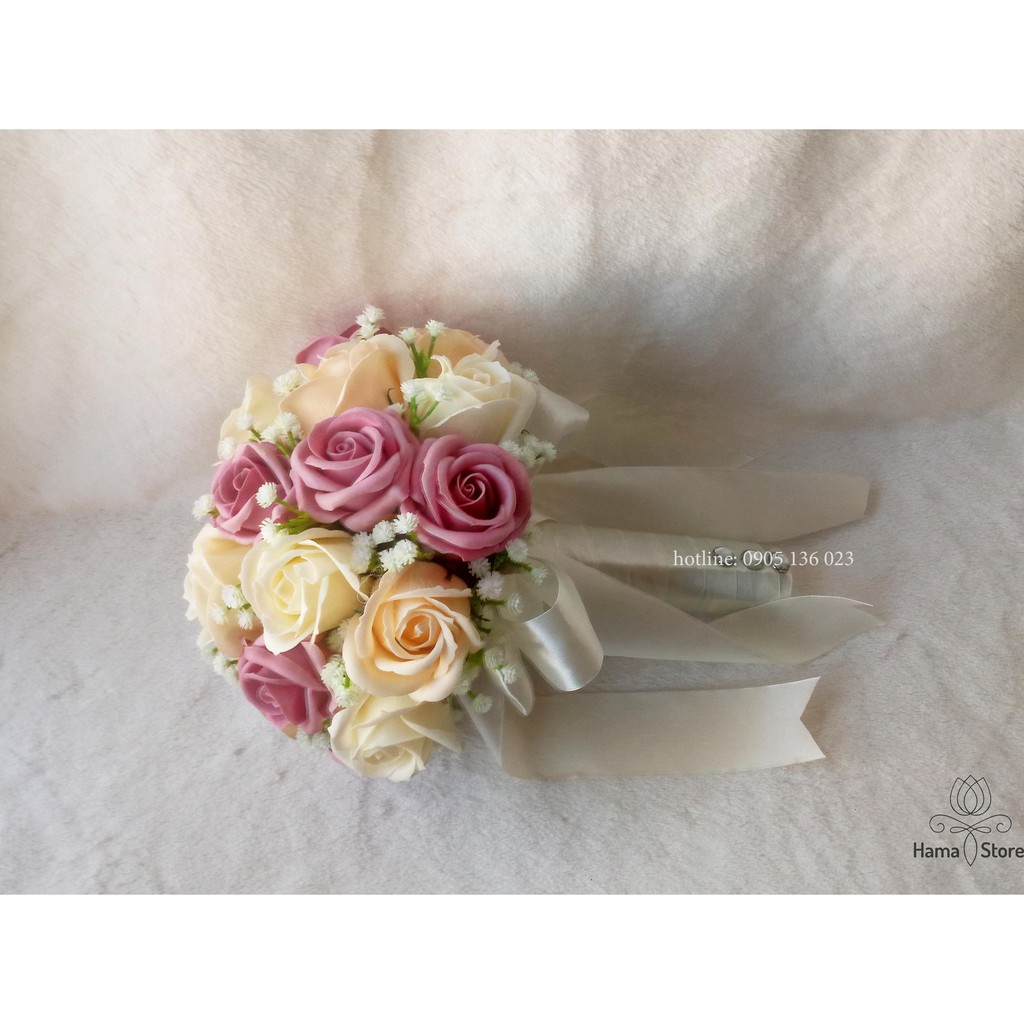 [GIAM8KFOLLOWER] - BÓ HOA CƯỚI CẦM TAY CÔ DÂU HOA HỒNG SÁP THƠM MÀU KEM MÀU HỘT GÀ MÀU HỒNG PASTEL ĐIỂM BABY