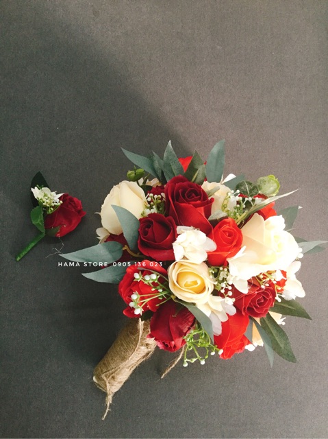 Tặng kèm cài áo chú rể theo tone hoa cô dâu
