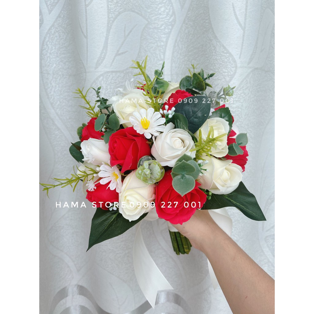 Nhà cửa & Đời sống > Trang trí nhà cửa > Hoa trang trí || [GIAM8KFOLLOWER] - BÓ HOA CƯỚI CẦM TAY CÔ DÂU SÁP THƠM MÀU ĐỎ MÀU KEM ĐIỂM CÚC HỌA MI VÀ LÁ TÁO GIÁ RẺ CHỤP HÌNH CƯỚICòn hàng