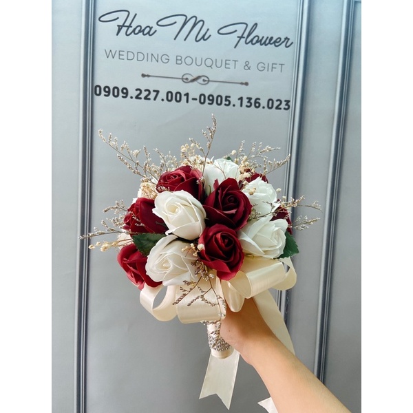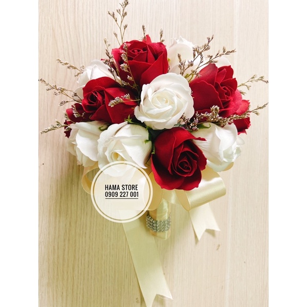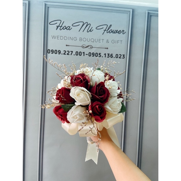 [GIAM8KFOLLOWER] - BÓ HOA CƯỚI CẦM TAY CÔ DÂU SÁP THƠM HOA HỒNG ĐỎ ĐÔ HOA HỒNG TRẮNG ĐIỂM BABY KHÔ