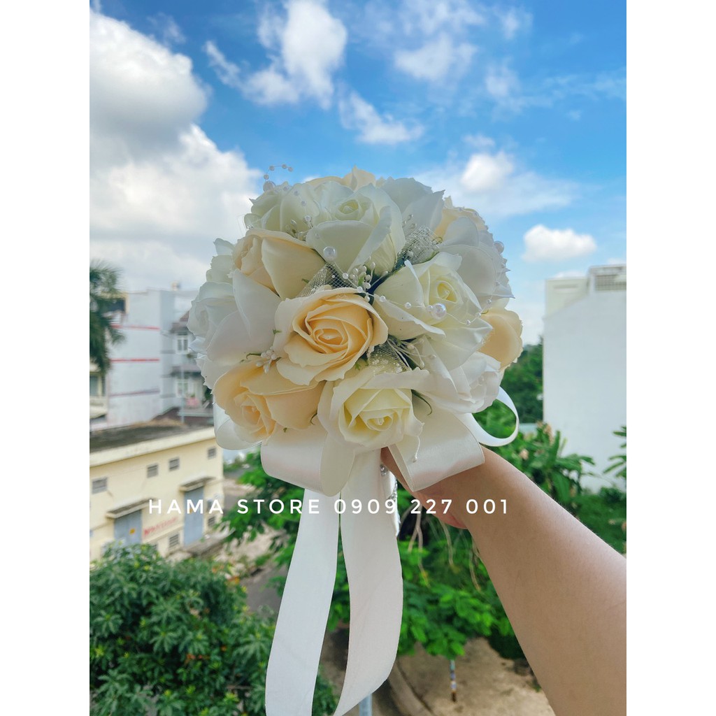 Hoa cầm tay có 2 size để lựa chọn phù hợp với cô dâu trong ngày cưới