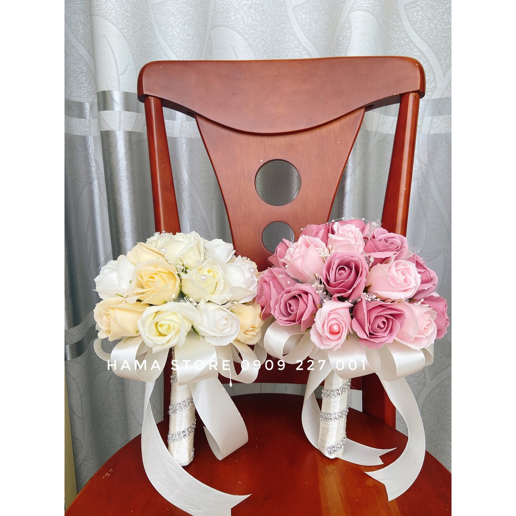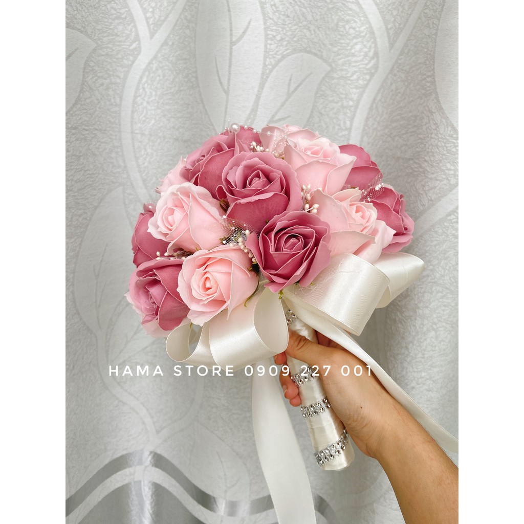 [GIAM8KFOLLOWER] - BÓ HOA CƯỚI CẦM TAY CÔ DÂU HOA HỒNG SÁP THƠM MÀU HỒNG PASTEL HỒNG DÂU ĐIỂM HẠT CHÂU KẾT CƯỜM