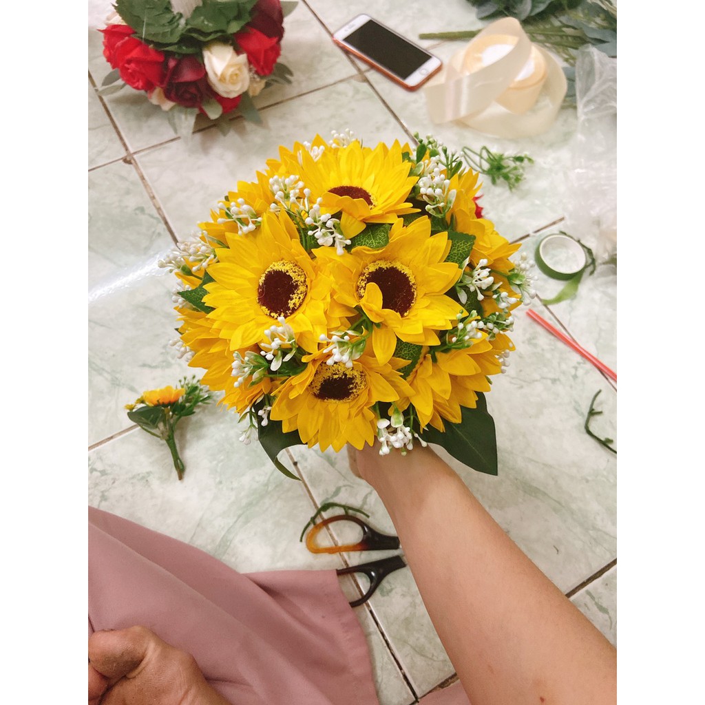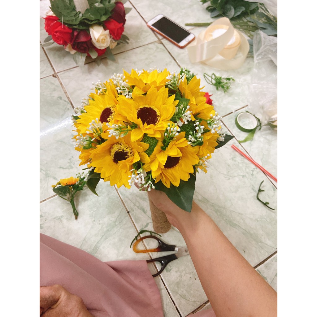 [FLASH SALE] - BÓ HOA CƯỚI CẦM TAY CÔ DÂU SÁP THƠM HOA HƯỚNG DƯƠNG ĐIỂM BABY CHỤP ẢNH CƯỚI GIÁ CỰC RẺBó hoa cưới cầm tay hoa hướng dương điểm baby ảnh thật cho cô dâu dùng chụp ảnh cưới hoặc cầm trong ngày cưới trọng đại.