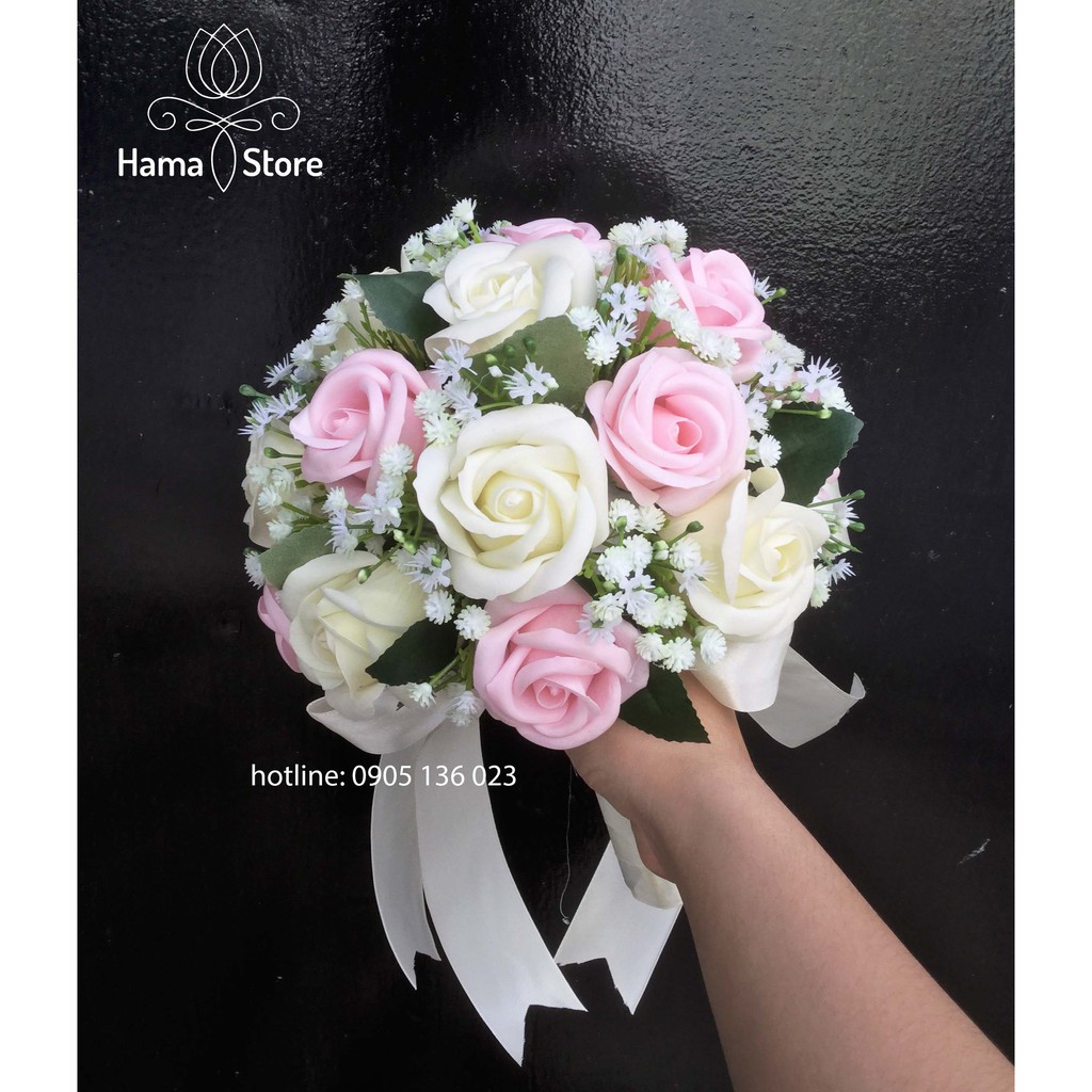 [GIAM8KFOLLOWER] - Hoa cưới hoa sáp thơm cô dâu tone hồng pastel ngọt ngào điểm baby vải giá rẻ xu hướng cưới