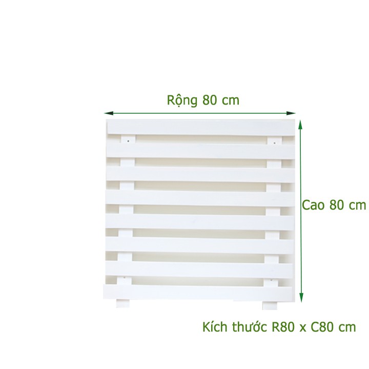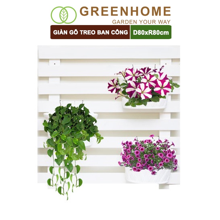 Giàn gỗ treo ban công, R80xC80cm, gỗ tràm siêu bền, màu trắng, làm khung hoa hồng leo, bông giấy |Green