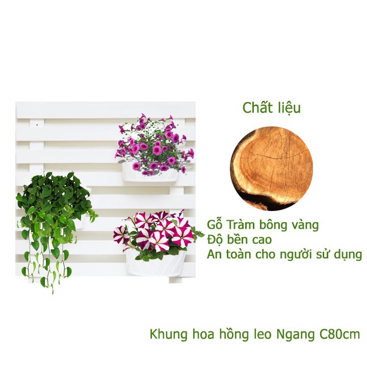 Giới thiệu Giàn gỗ treo ban công, R80xC80cm, gỗ tràm siêu bền, màu trắng, làm khung hoa hồng leo, bông giấy |Green