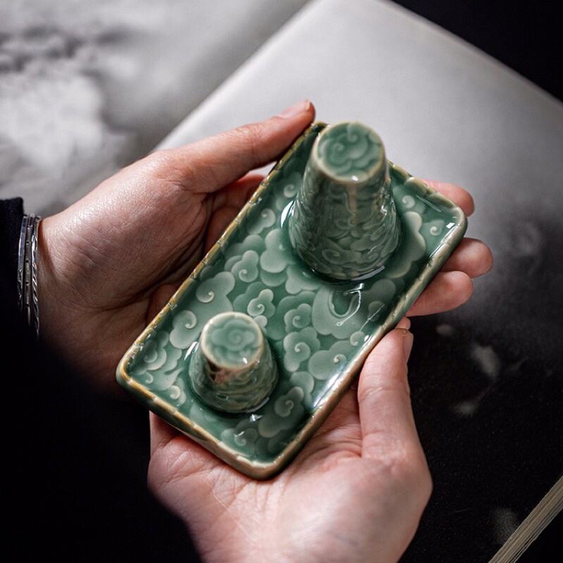 Giàn phơi ấm trà, nắp ấm trà , chén trà,... Men sứ Long Tuyền Tường Vân—Có 2 màu: Xanh và Be