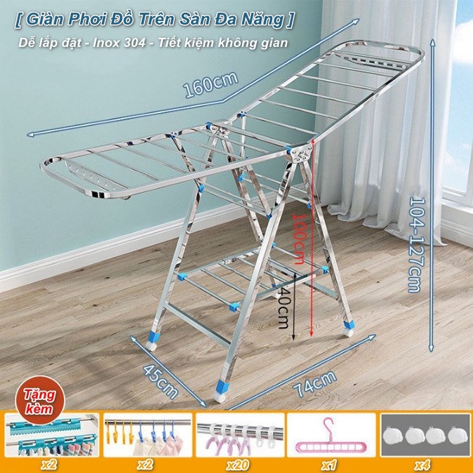Nhà cửa & Đời sống > Dụng cụ chăm sóc nhà cửa > Dây phơi & giá phơi quần áo || Giàn Phơi Dày cao cấp 3Tầng Tại Sàn Di Chuyển Được SunHome Inox - Home and GardenCòn hàng