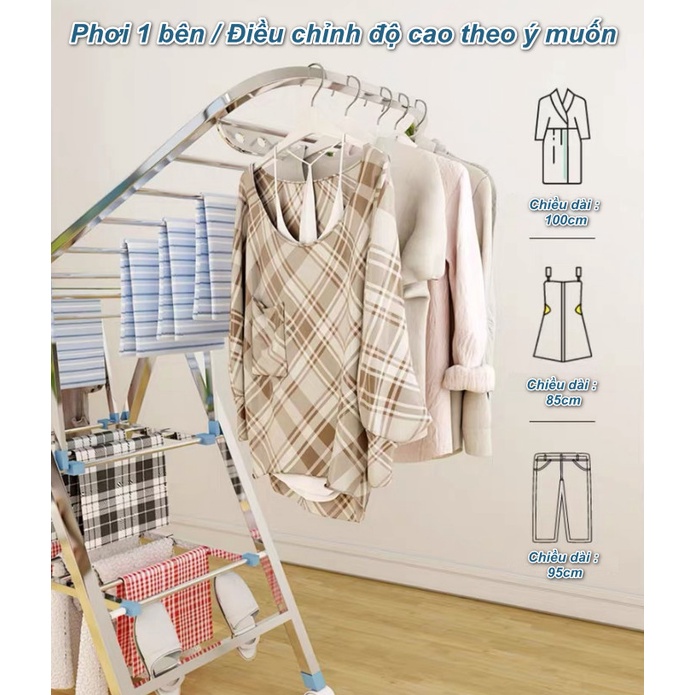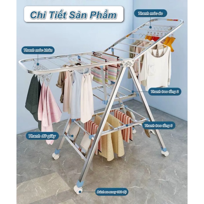Giàn Phơi Dày cao cấp 3Tầng Tại Sàn Di Chuyển Được SunHome Inox - Home and Garden
