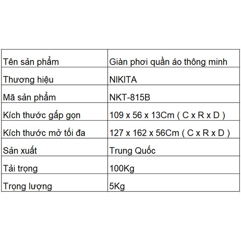 Thương hiệu: Nikita | Xem thêm các sản phẩm Giá, kệ phơi quần áo của NikitaMô tả ngắn