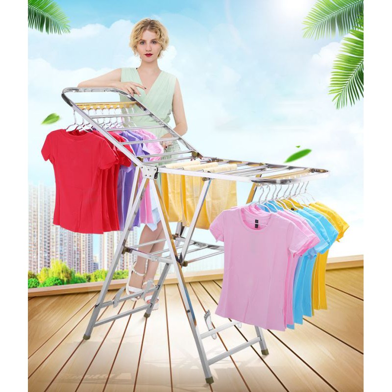 ✔️Có thêm 2 thanh Inox bản dẹt được đục lổ, cố định móc treo ở khoảng cách cố định đảm bảo áo quần nhận đủ ánh nắng ở các mặt