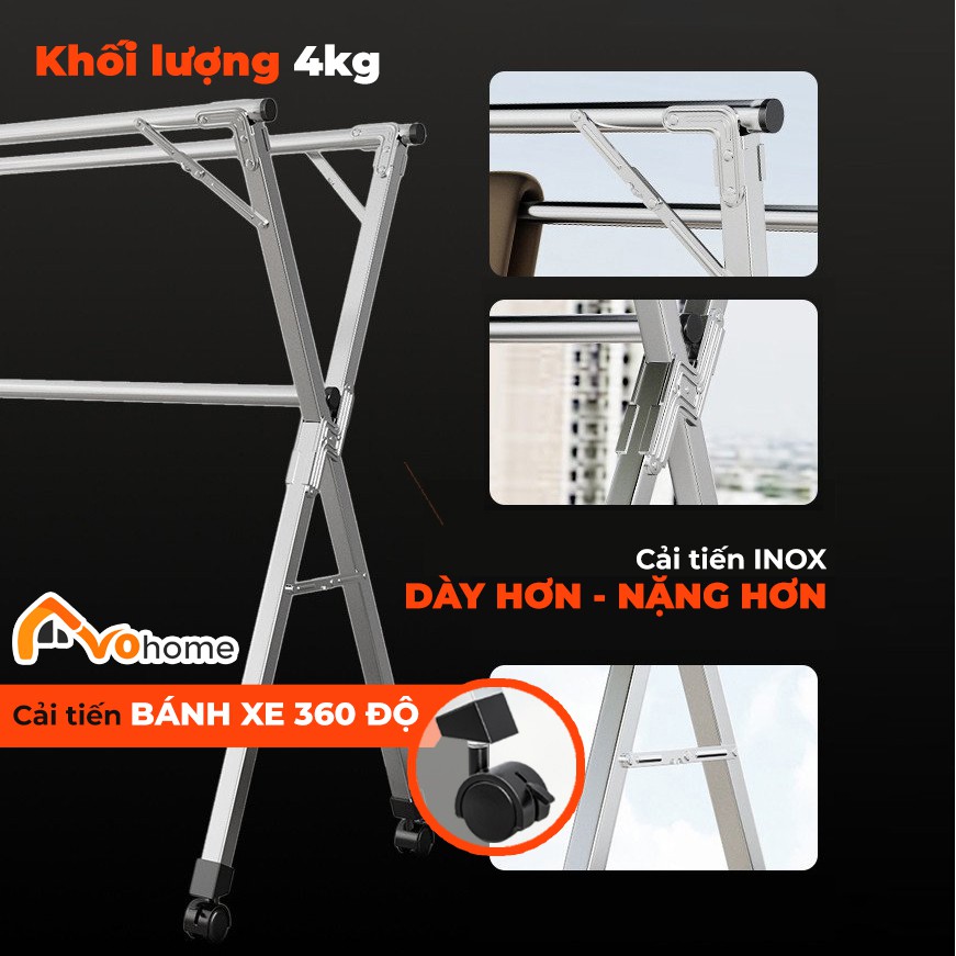 ❌❌CHÚ Ý, CHÚ Ý : QUÝ KHÁCH ĐỪNG QUÊN Lấy Mã FREESHIP Để Được Hỗ Trợ Lên Đến 70k. Khách Hàng MIỀN NAM Vui Lòng INBOX SHOP Để Được HỖ TRỢ Thêm 10K PHÍ SHIP NHÉ !!!!✔️TRÊN THỊ TRƯỜNG CÓ 2 DÒNG SẢN PHẨM,Phân Loại MỎNG chỉ nặng 3kg-3,5kg và có 2 thanh ngang 2cm. Sào Phơi Của Avogroup phiên bản nâng cấp bánh xe kết cấu 3 thanh ngang 2.5cm, giúp chịu lực tốt và phơi được rất nhiều đồ.