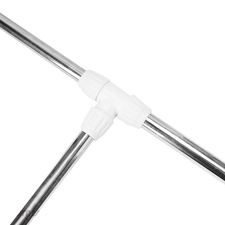 - Bao gồm: 4 bánh xe, 2 thanh trụ nối từ bánh xe, 2 giá đỡ, 4 thanh hỗ trợ, 2 khớp nối, 4 thanh hỗ trợ, 2 sào phơi đồ