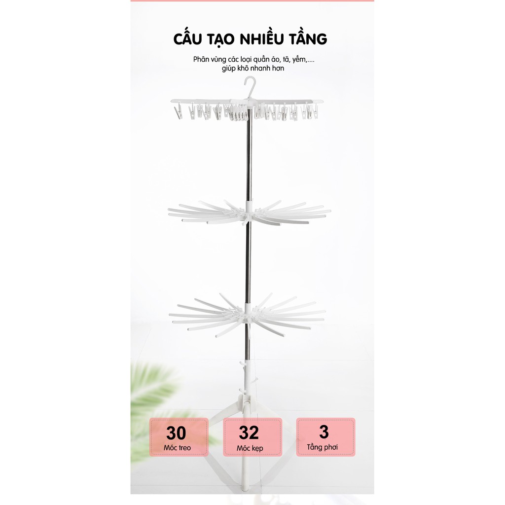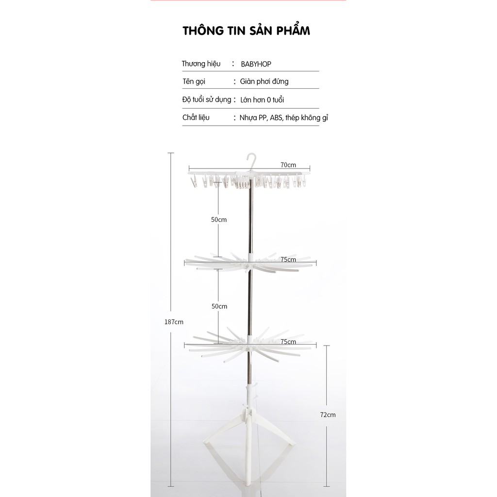 Nhà cửa & Đời sống > Dụng cụ chăm sóc nhà cửa > Dây phơi & giá phơi quần áo || Cây giàn phơi đứng cao cấp cho bé 3 tầng thương hiệu Babyhop thiết kế chống đổ có thể xoay 360 độCòn hàng
