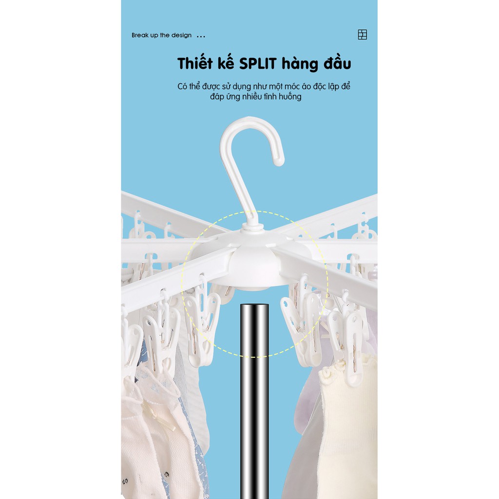 - 3 tầng cách biệt phơi được nhiều đồ, có 1 tầng 30 kẹp thuận tiện phơi bao tay, bao chân, khăn cho bé